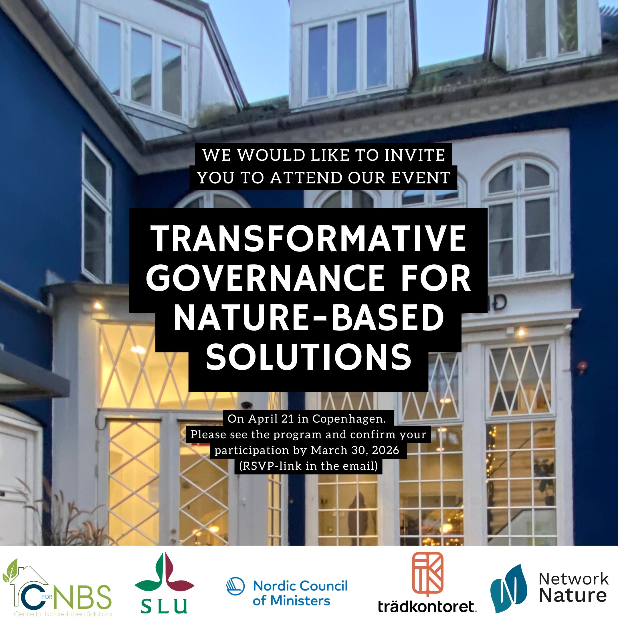 Transformative Governance for Nature-based Solutions is a one-day event taking place on April 21 in Copenhagen. Sign up here!