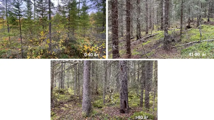 - I varje landskap undersöktes fem produktionsskogar i olika åldrar.