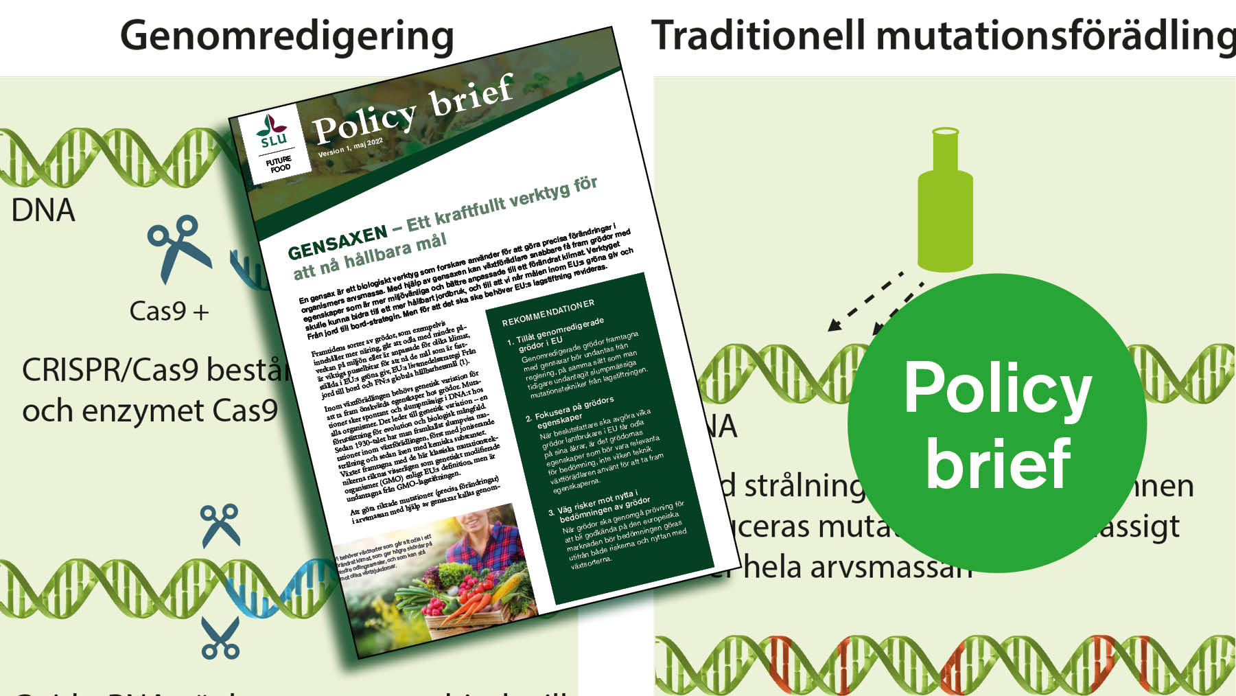 Europas politiker bör verka för att gensaxen ska kunna komma till nytta för miljön, konsumenterna och lantbrukarna och bidra till att minska beroendet av importerade livsmedel och djurfoder i vår del av världen. Policy brief från SLU Future Food.