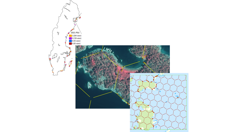 I en SQL-databas med alla klasser och variabler, inventeras alla trakter från stickproven, där vi använder både ett GIS-program och ett tolkningsprogram där bilderna kan studeras i 3D. Kalibrering av personal sker före, och kontinuerligt under inventering. Efter att fältdata kommit in, sker en validering och ytterligare kalibrering i samband med att manualen justeras och definitioner kan göras tydligare för bägge inventeringarna.